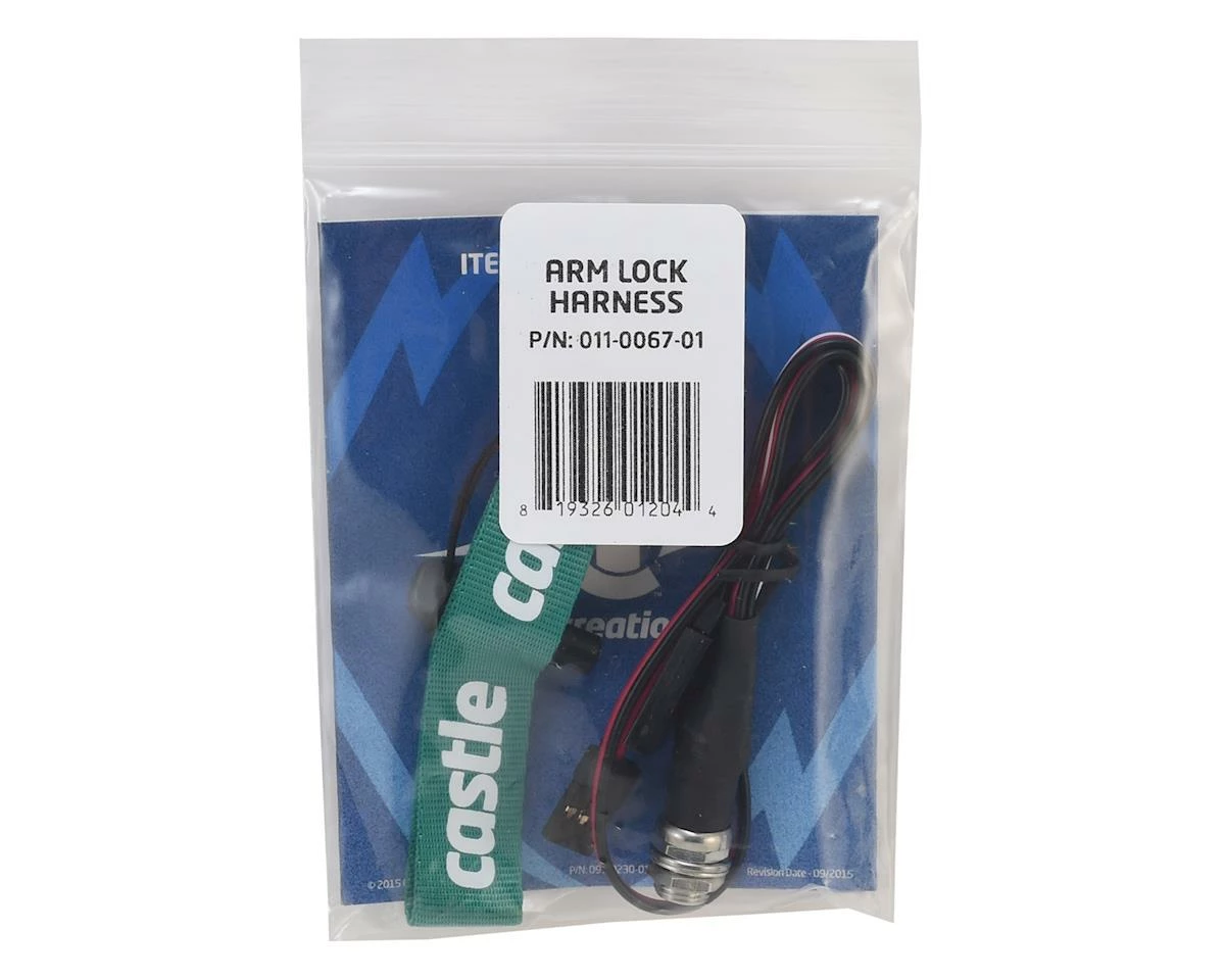 !!!Warning!!! The ARM LOCK KEY feature should be used as an extra safety measure NOT to replace general safety precautions. Edge Arm Lock mode is intended as a secondary safety device. It is not intended to replace safe practices or careful handling of your RC power system, vehicle, and transmitter.Edge Arm Lock is only operational if you have successfully configured the Edge ESC using Castle Link software.Edge Arm Lock requires that the AUX LINE of the Edge ESC receives a voltage between 1.8V and 8.4V to arm. Failure of the power source (0 volts) will cause the ESC to enter ARM LOCKED mode. Do not mount the Edge Lock Harness to a conductive material (e.g. metal, carbon fiber, etc.).