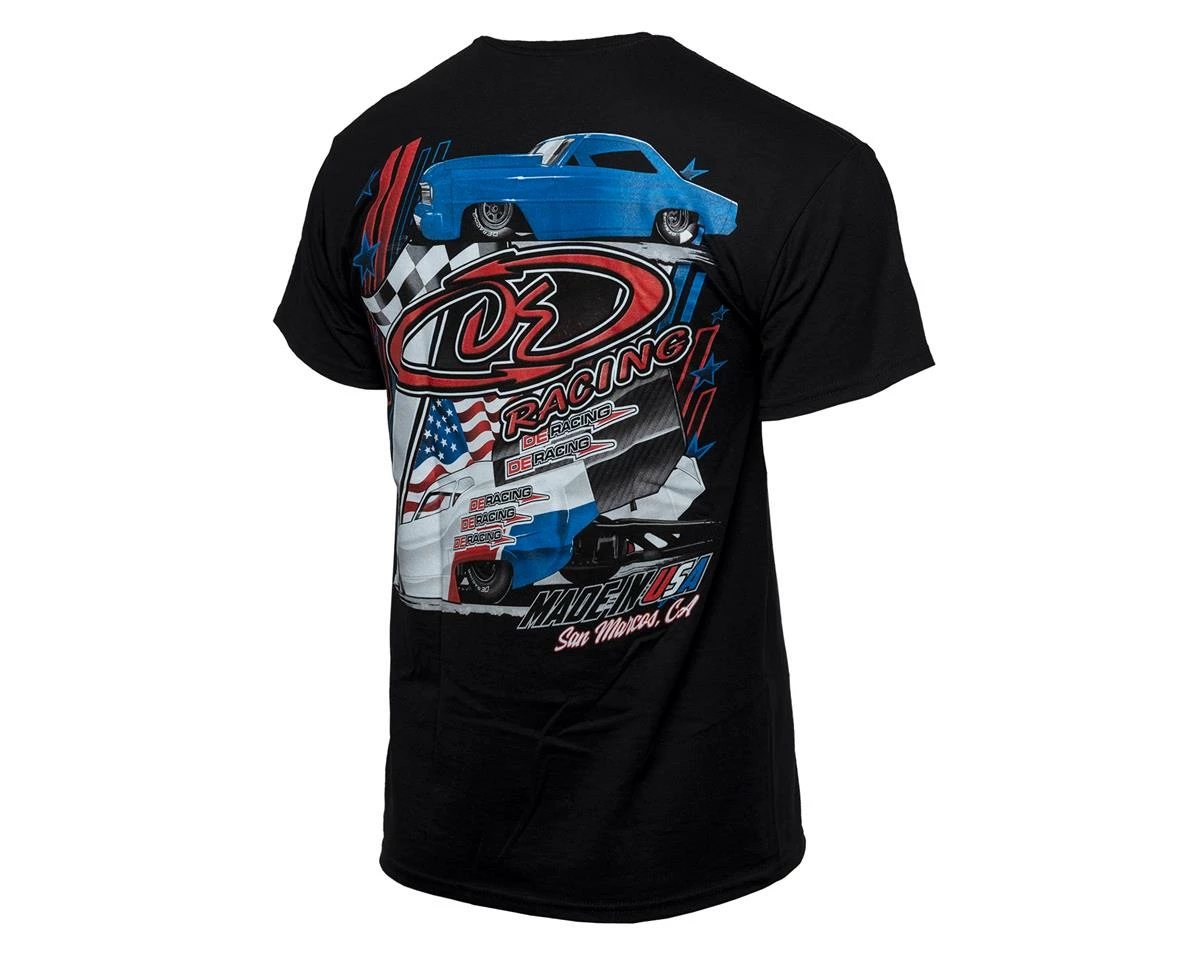 The DE Racing 2021 Drag Race T-Shirt is a great way to show your competition whos rubber keeps your ride hooked up. This tee features a DE Racing logo on the front, and an awesome DE Racing “Made in the USA” graphic on the back. Use the menu above to choose from multiple sizes.Â