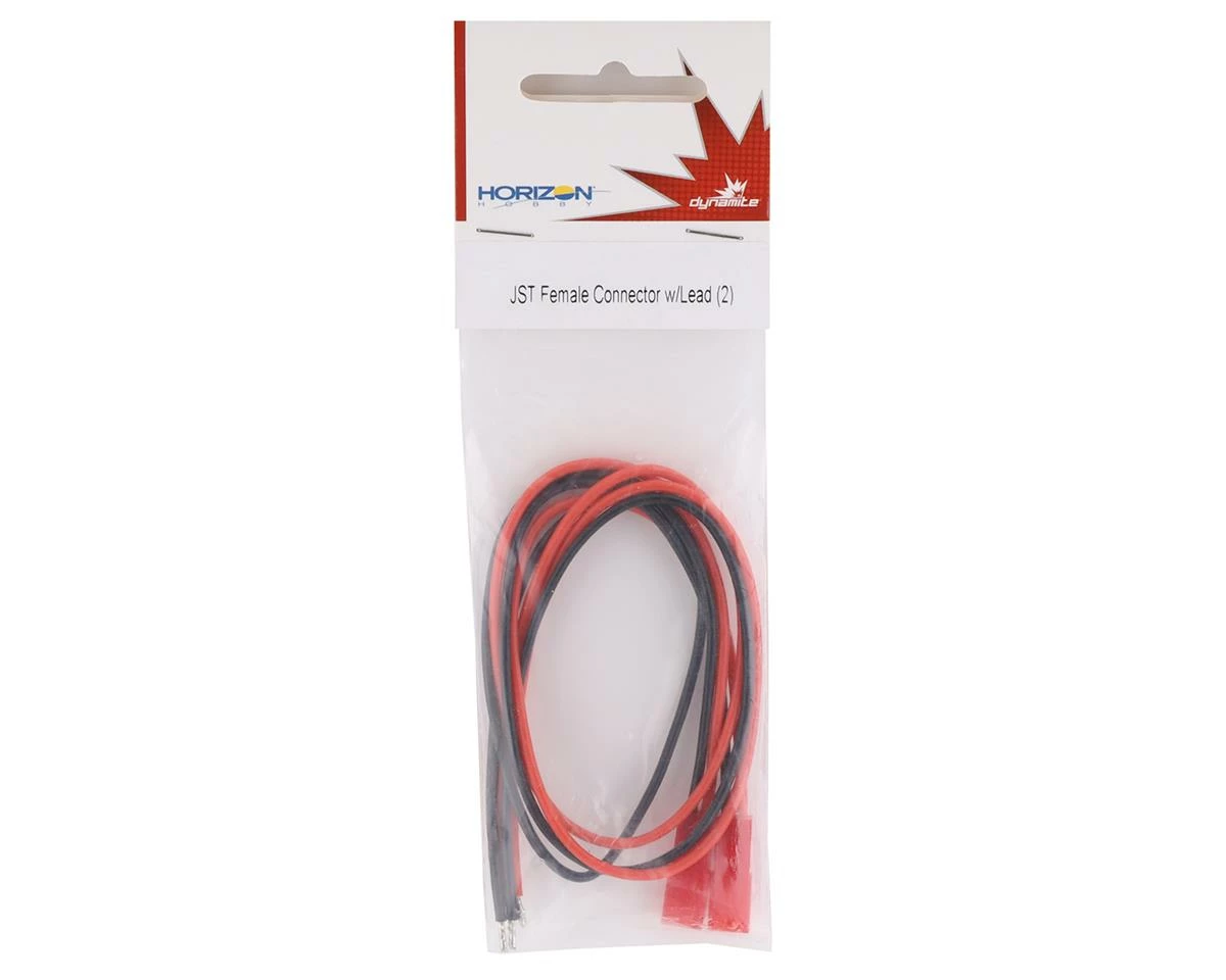 Dynamite JST Female Connectors. These pigtails feature 20AWG 300mm wire attached to a female JST connector. Package includes two JST pigtails.