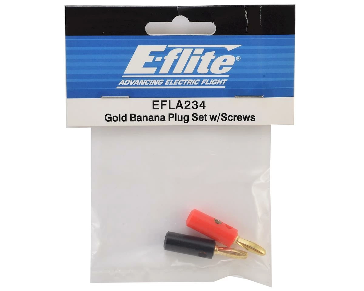 This is a pack of E-flite Gold Banana Plugs with installed screws.