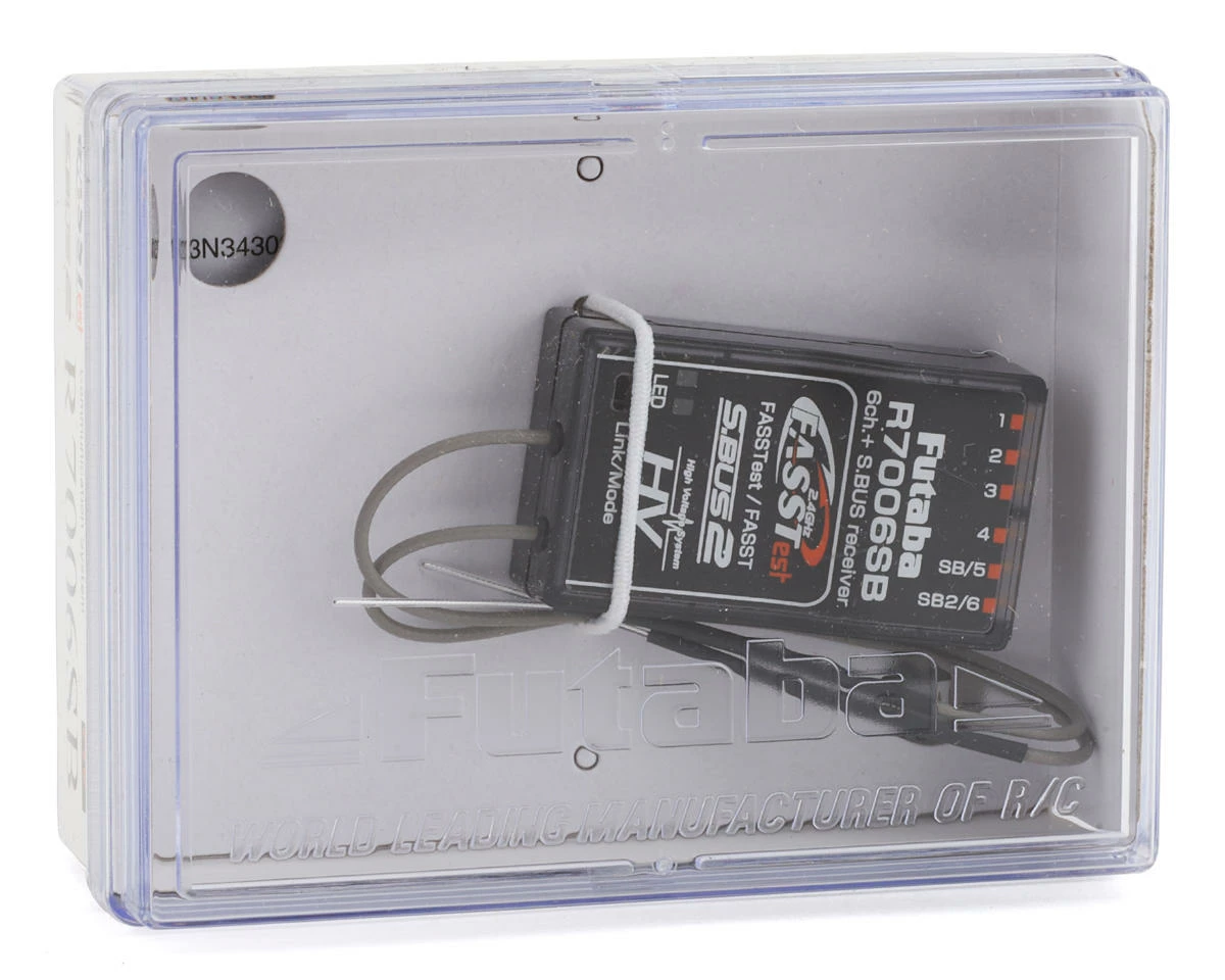 This is the Futaba R7006SB 2.4GHz FASSTest 6+ Channel High-Voltage Full Range Receiver for Aircraft Models. jxs 09/18/16 ir/jxs