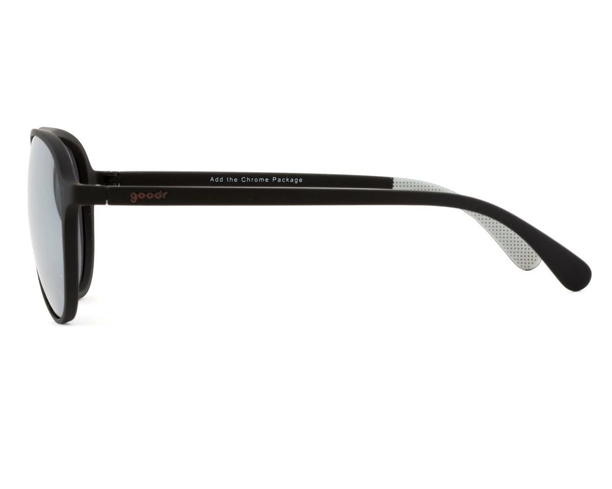 Goodr’s MACH Gs are a classic aviator style made to give you the speed if you feel the need. This smooth, sleek frame means no unsightly imprints on your nose from those wierd nose pads on traditional metal aviator frames. This elegant and classy Chrome Package will definitely add some much needed bling to your old hooptie head.