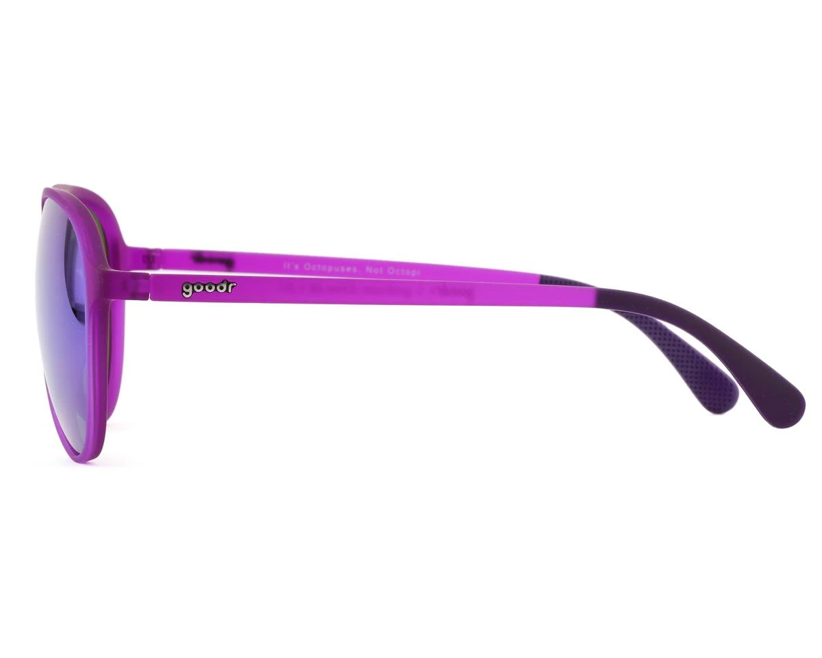 Goodr’s MACH Gs are a classic aviator style made to give you the speed if you feel the need. This smooth, sleek frame means no unsightly imprints on your nose from those wierd nose pads on traditional metal aviator frames.