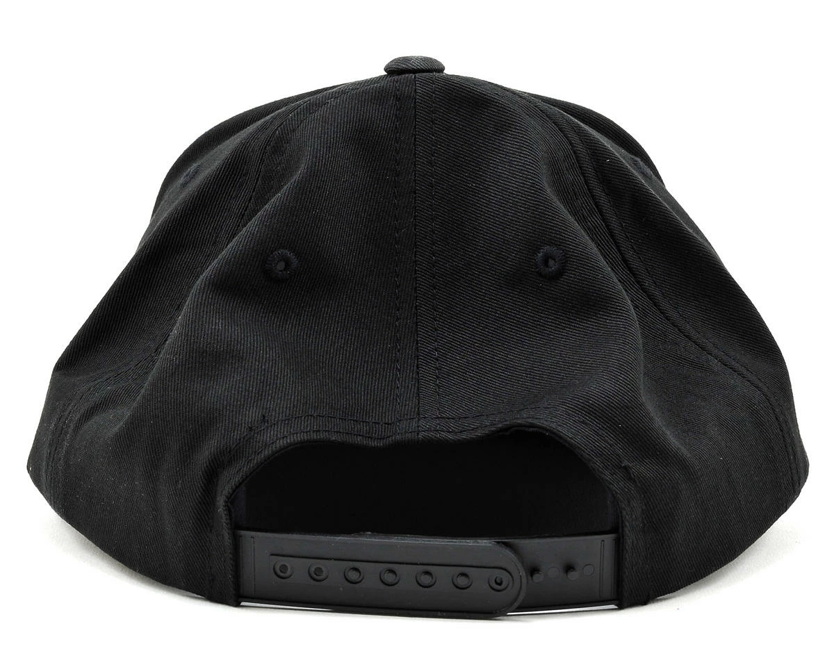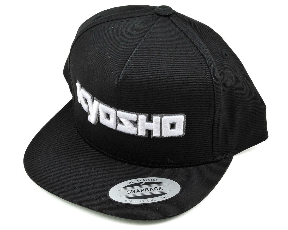 This is a Kyosho Snap Back Hat in black with an embroidered Kyosho logo on the front. The embroidery gives the logo a dimensional appearance, that looks like its jumping off the hat! There is also a plastic strap on the back of the hat providing “one size fits most” adjustability.