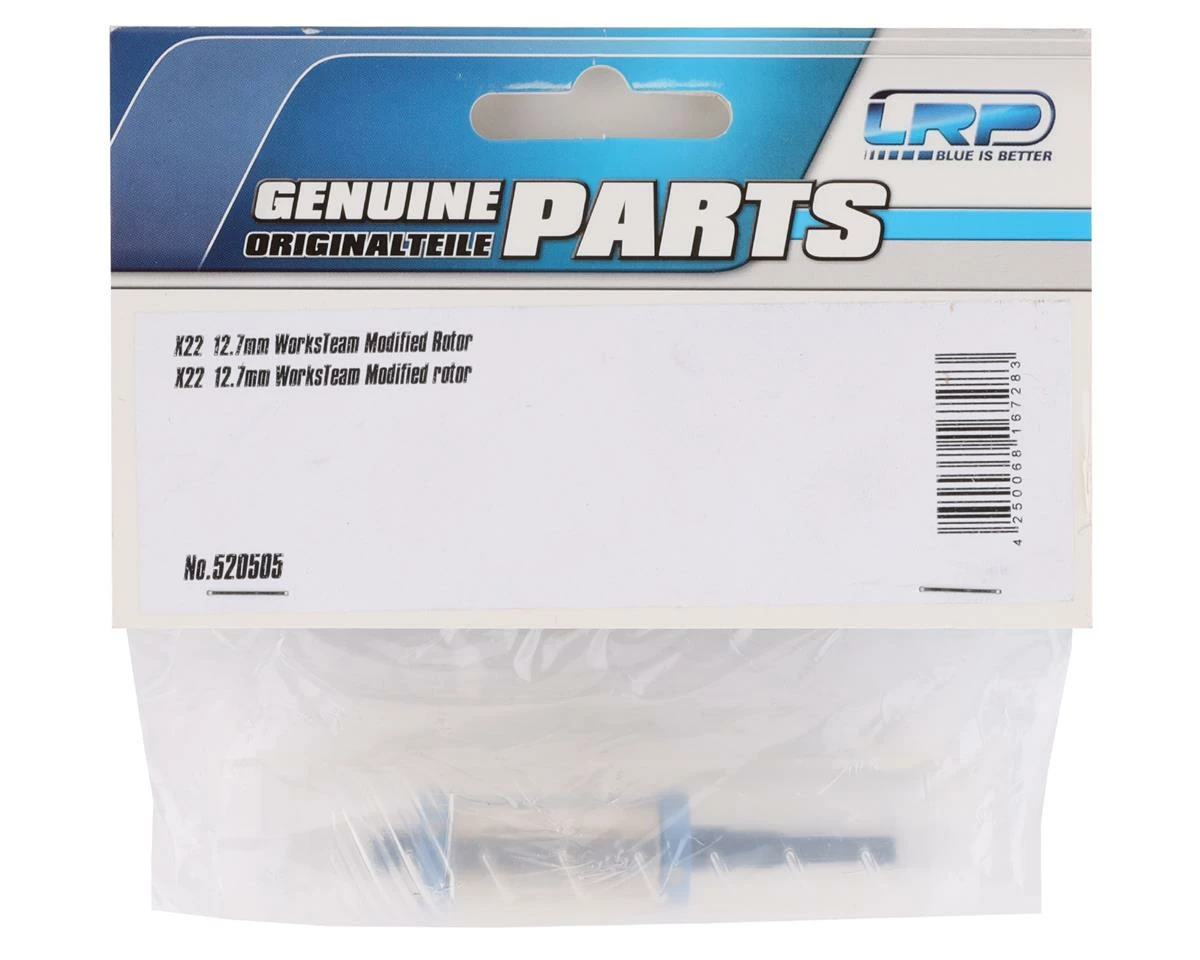LRPÂ X22 12.7mm Works Team Modified Rotor. This rotor is a great tuning option for the LRP X22 Motor. Smaller diameter rotors are designed for more rpm, while larger diameter rotors are made for more bottom-end torque. Package includes one rotor.