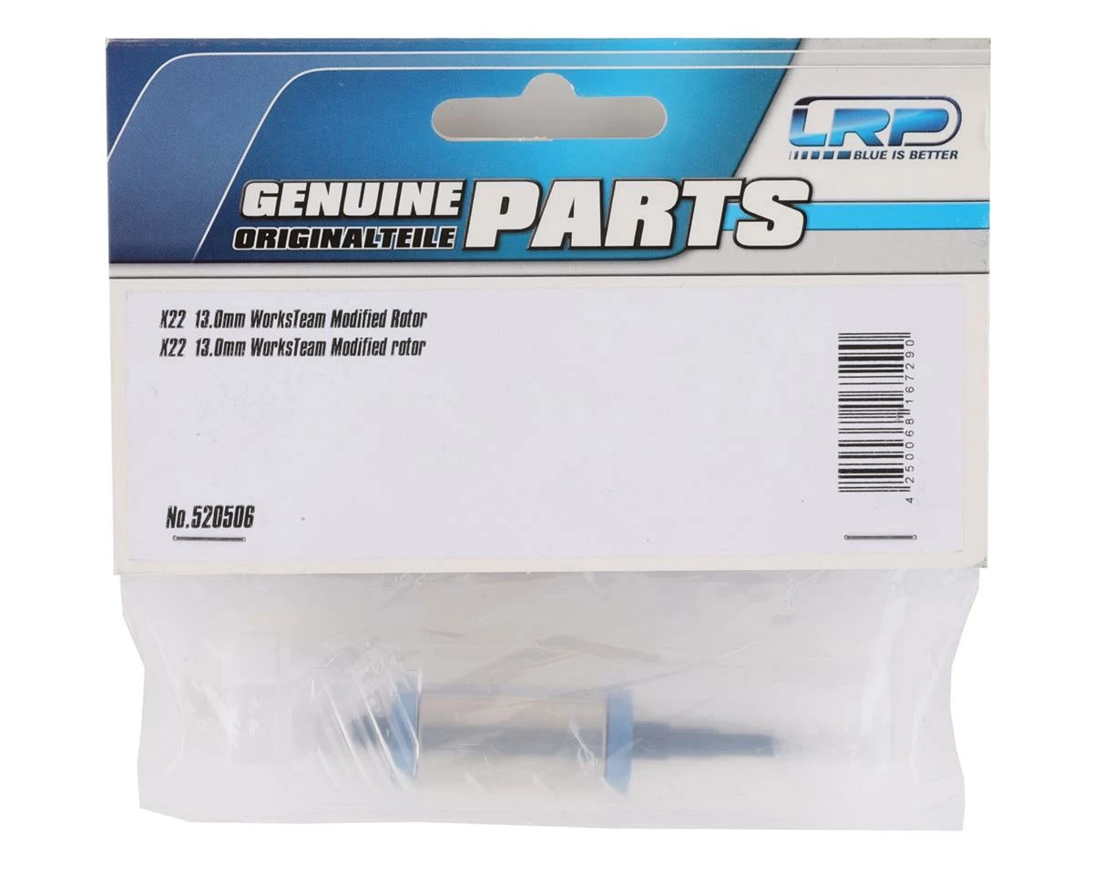 LRPÂ X22 13.0mm Works Team Modified Rotor. This rotor is a great tuning option for the LRP X22 Motor. Smaller diameter rotors are designed for more rpm, while larger diameter rotors are made for more bottom-end torque. Package includes one rotor.