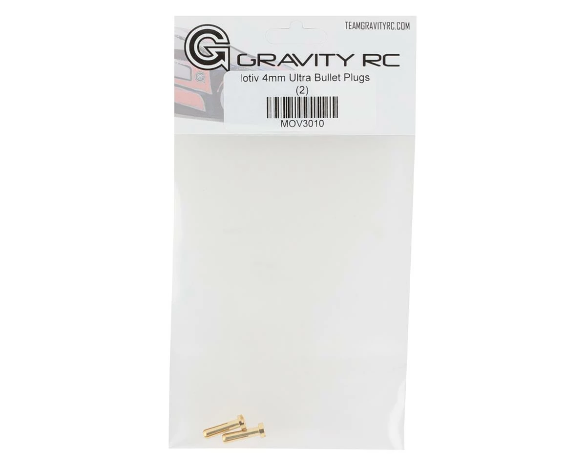Motiv 4mm Ultra Bullet Plugs. These bullet plugs offer a secure, low resistance connection and have a generous soldering area. Package includes two 4mm Ultra Bullet Plugs.Â
