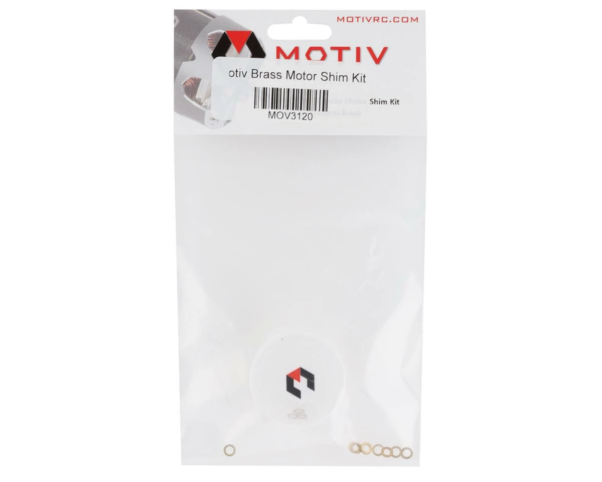 Motiv Brass Motor Shim Kit. This is an optional shim kit intended for the Motiv 1/10 scale motors. Package includes six .55MM shims and six .35MM shims.Â