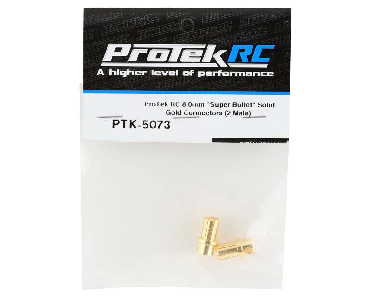 The ProTek RCÂ 8.0mm “Super Bullet” Solid Gold Connectors. The ProTek R/C “Super Bullet” Solid Gold Connectors are an absolute must for high current / high voltage applications! With lower resistance than a typical T-style plug and traditional spring-type bullet connectors, they are the standard for brushless applications. Package includes two bullet connectors.