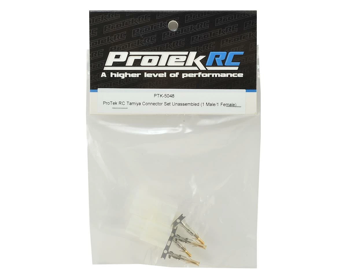 This is a pack of Tamiya type connectors from Protek R/C. This pack includes one male plug, one female plug and the necessary metal connectors.