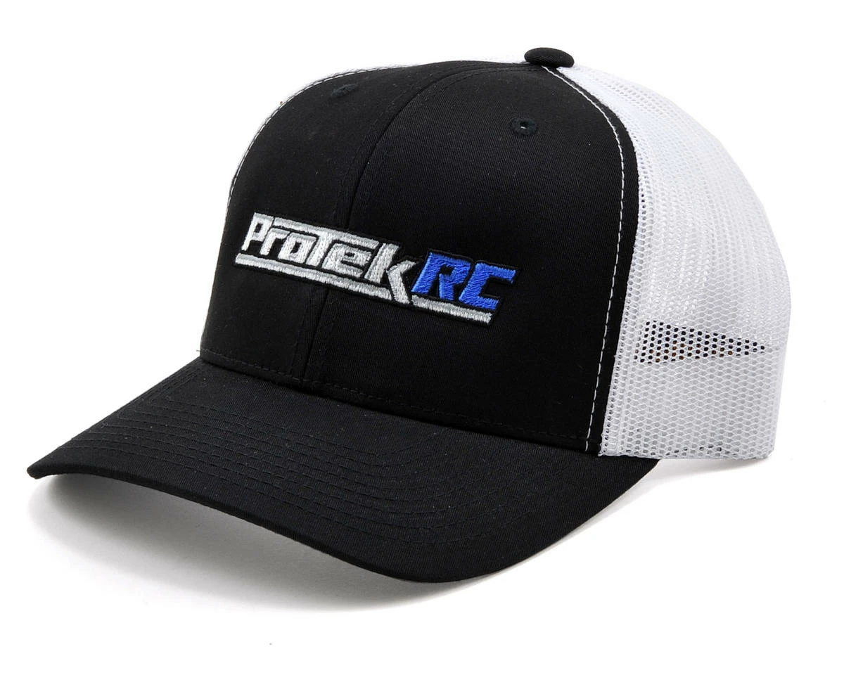 This is the ProTek R/C Black Trucker Hat. This hat features the ProTek R/C logo embroidered into the front while the rear features a white plastic mesh material that will help keep your head cool in the heat of competition. There is also a plastic strap on the back of the hat providing ’one size fits most’ adjustability.