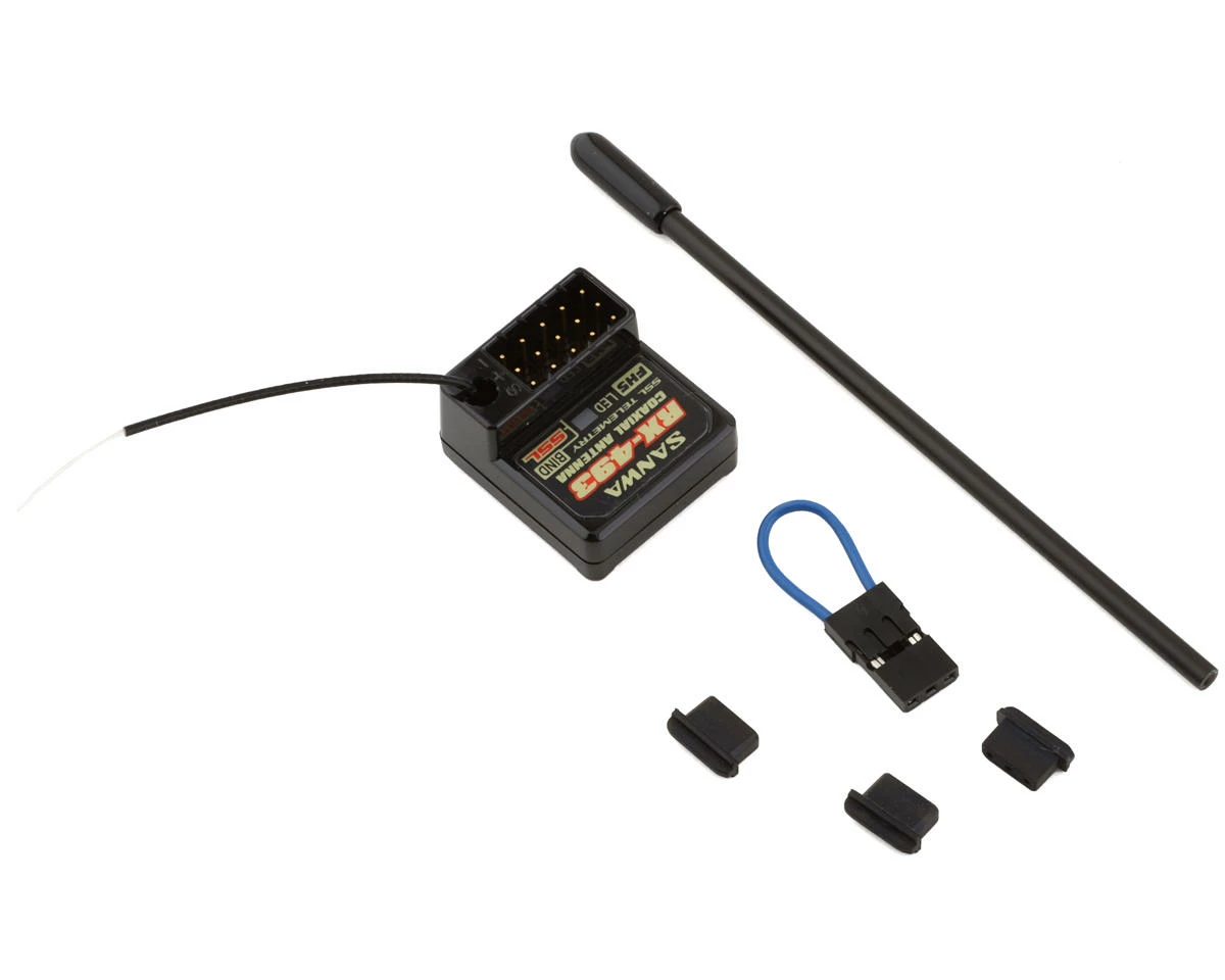 The included RX-493 M17 2.4GHz 4-Channel FHSS5 SRX/SSL Receiver is a FH5/FH5U and SXR response mode compatible receiver that features a traditional 100mm coaxial antenna with an integrated antenna tube mount, ensuring stable performance in about any situation compared to built-in antenna receiver units. Furthermore the high-voltage compatible receiver is waterproof, comparable to IPX4, and it supports Sanwa’s SSL function. The unit measures 26×23.2x14mm, it weighs in at 6.2g and is designed to work exclusively with the Sanwa M17 radio system.Â