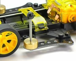 The VZ chassis is a compact and lightweight design that features reinforced designs for bumper, rear stay base and more ensuring that it has the durability and flexibility to withstand racing accidents. It is also a rather adaptable unit that lets its owner make numerous updates to the setup. Low friction 620 plastic bearings are molded in POM and maximize drive efficiency, while the chassis and A parts are molded in ABS.