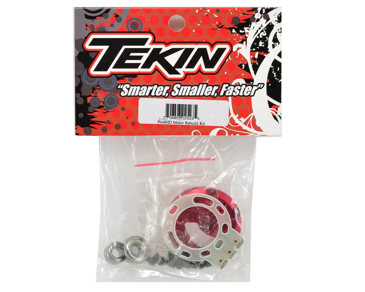 This is a replacement Tekin Pro4 HD Motor Rebuild Kit. Package includes a front end bell, rear cap, front and rear bearings, solder tab, isolator and replacement hardware.Â