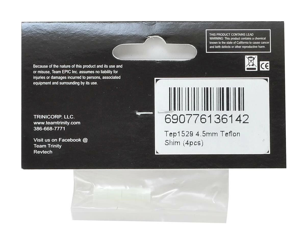 The Trinity 4.5mm Teflon Motor Shims are a must have for serious tuners. Teflon shims are non magnetic, light weight and have less drag than the standard brass shim used in most motors.